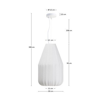 Stropna svjetiljka Somar brenda Kave Home impresionira svojim inovativnim dizajnom. Njeno sjenilo izrađeno je od raspršenih sintetičkih vlakana na podlozi od rotirajućih čeličnih šipki, što joj daje geometrijski izgled sa suptilnim rebrima. Ovaj komad ima moderan osjećaj, ali istovremeno evocira suptilan klasični dodir, što ga čini savršenim za razne interijere. Kombinacija materijala i tehnika proizvodnje osigurava mekano i suptilno osvjetljenje koje će stvoriti ugodnu i ugodnu atmosferu u svakoj prostoriji. Ožičenje ima mekani i fleksibilni vanjski sloj, dizajniran da spriječi zapetljavanje i olakša svakodnevnu upotrebu. Svjetiljka je kompatibilna s E27 žaruljama do 40 W, koje nisu uključene. Idealan je izbor za one koji traže prepoznatljiv i funkcionalan dodatak rasvjeti u svom domu ili radnom prostoru.