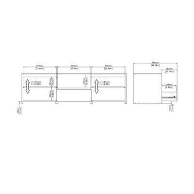 Bijela boja u kombinaciji s dekorom hrastovine stvara elegantan izgled. S dimenzijama od 179x52x48 cm pruža dovoljno mjesta za TV i drugu opremu. Prilagodljive police i integrirani sustav upravljanja kabelima osiguravaju maksimalnu funkcionalnost. Ovaj stol je idealan izbor za moderne interijere, gdje se spajaju stil i praktičnost.