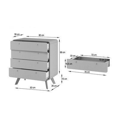 Od MDF-a, završna obrada: Folija, u mat dekoru, bijela, širina 80 cm, visina 88 cm, dubina 39 cm