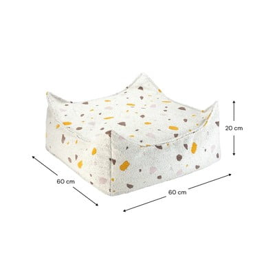 Vreća za sjedenje Terrazzo Square brenda Wigiwama odličan je dodatak dječjoj sobi ili igraonici. Možete je koristiti kao tabure, dodatno sjedalo ili prostor za igru. Pogodna je za djecu od 3 do 9 godina. Uklonjiva navlaka izrađena je od tkane mješavine buklea i šenila, certificirana je OEKO-TEX® i GRS®. Preporučuje se ručno pranje, a zatim sušenje na zraku.