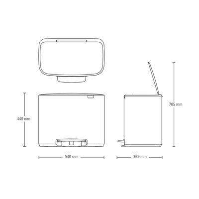 Zbog dva odvojena plastična spremnika (zapremnine 11 i 23 l) ova je kanta idealna za jednostavno razvrstavanje otpada . Svaki od njih može se jednostavno ukloniti iz konstrukcije radi lakšeg održavanja. Poklopac se otvara glatko, jednostavnim pritiskom na pedalu. Ako želite da ostane otvoren, samo ga zaključajte crvenim gumbom.