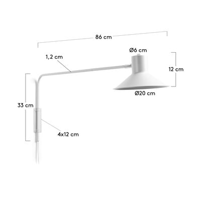 Zidna lampa Aria brenda Kave Home izrađena je od bijelog obojenog čelika. Ima fleksibilni zglob koji omogućuje jednostavno usmjeravanje svjetla tamo gdje vam je potrebno. Svjetiljka je kompatibilna sa žaruljom tipa E14 maksimalne snage 25 W. Žarulja nije uključena u pakiranje.