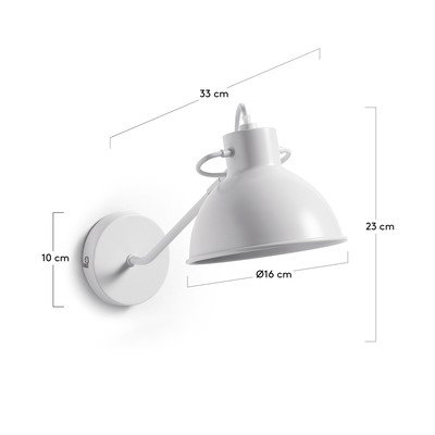 Bijela zidna lampa Offelis brenda Kave Home izrađena je od metala i ima pomičnu ruku za podešavanje smjera svjetlosti. Svjetiljka je prikladna za žarulje s grlom E14, žarulja nije uključena.