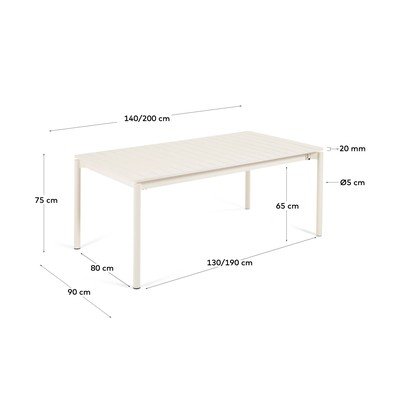 Stol Zaltana izrađen je od aluminijske konstrukcije s praškastim premazom, što jamči njegovu trajnost i čvrstoću. U stolu je skriven produžetak od 60 cm zahvaljujući kojem možete proširiti stol. Mehanizam produžetka je dizajniran tako da su stopala uvijek na vanjskim rubovima. Stol je pogodan i za interijere i eksterijere. Ipak, preporučujemo da ga zaštitite od nepovoljnih vremenskih uvjeta.