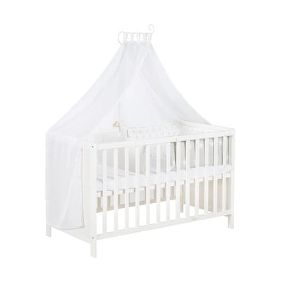 Dječji krevet Stars Gray60x120 cm, s podesivom visinom/s baldihanom/za spavanje s bebom, s madracem/s podnicom, od šperploče, završna obrada: boja, bijeli