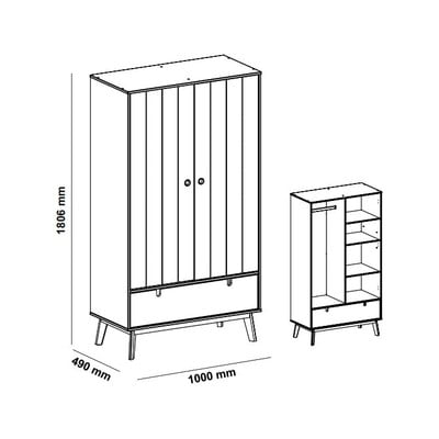 Od MDF-a, završna obrada: boja, bijela/u prirodnoj boji, širina 100 cm, visina 180 cm, dubina 49 cm