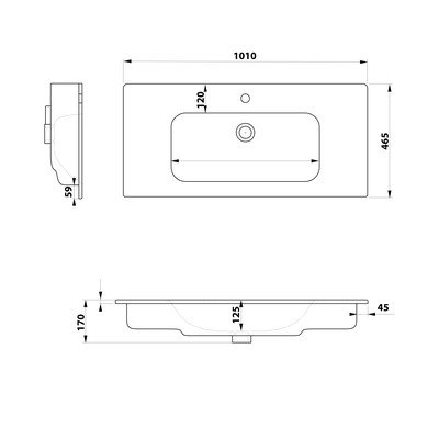 Keramički, bijeli, širina 101 cm, dubina 46,5 cm, visina 17 cm