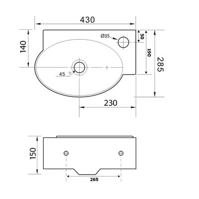 Kutni, keramički, bijeli, širina 43 cm, dubina 28,5 cm, visina 15 cm