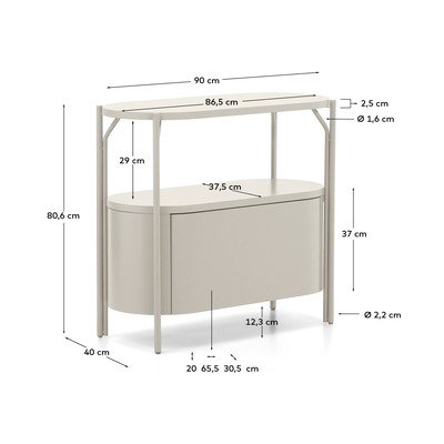 Ormarić za umivaonik Arely brenda Kave Home karakteriziraju nježni oblici i jednostavne linije koje zajedno stvaraju funkcionalan i ugodan prostor. Njegov ekskluzivni dizajn dizajnirao je Nahtrang za Kave Home s naglaskom na udobnost i glatku interakciju u svakodnevnom životu, zahvaljujući odsutnosti oštrih rubova. Čelična konstrukcija u kombinaciji s lakiranim vodoodbojnim MDF tijelom osigurava trajnost, stabilnost i elegantan izgled koji se lako uklapa u svaki stil kupaonice. Izvlačna ladica opremljena je sustavima otvaranja i mekog zatvaranja, koji olakšavaju pristup i organiziranje pohranjenih predmeta, doprinoseći praktičnosti i redu. Podesive nožice osiguravaju optimalnu stabilnost čak i na neravnim podovima. Odsutnost prethodno izbušenih odvodnih rupa omogućuje vam da prilagodite položaj umivaonika točno svojim potrebama.