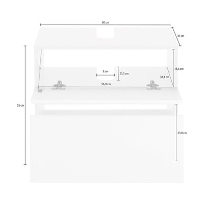 Od MDF-a, završna obrada: Folija, u mat dekoru, bijeli, širina 60 cm, visina 55 cm, dubina 35 cm