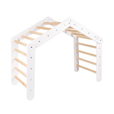Montessori Pikler trokut tvrtke Meowbaby. Njegov modularni dizajn omogućuje vam sastavljanje jedne velike kućice ili dvije manje ljestve za varijabilnu igru.