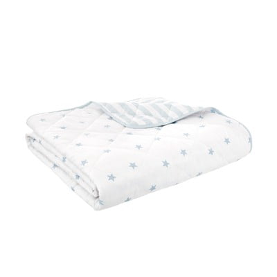 Bijeli/plavi pamučan prošiven dječji pokrivač 135x190 cm Mini Star & Stripes – Bianca