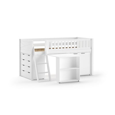 Krevet je izrađen od kvalitetne borovine koja osigurava stabilnost i izdržljivost. Zahvaljujući podignutom dizajnu, krevet Scott nudi mnogo prostora za pohranu ispod kreveta. Radni stol nudi savršeno mjesto za učenje ili kreativne aktivnosti. Ormar i komoda pružaju dodatni prostor za odlaganje odjeće i drugih predmeta.