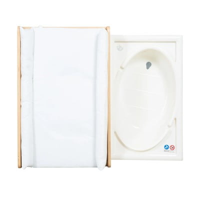Uključena je mekano podstavljena podloga za prematanje (83 x 51 cm) sa sigurnosnim rubovima i perivom PU površinom koja je nježna prema bebinoj koži. Kada je veličine cca. 60 x 35 cm i zapremine 10 litara, što omogućuje ugodno kupanje, nakon čega se beba odmah može prenijeti na površinu za presvlačenje. Voda se može jednostavno ispustiti pomoću praktičnog odvodnog crijeva bez nošenja kade. Stol za prematanje također ima dva pretinca za pohranjivanje tkanine koji pružaju dovoljno prostora za pohranjivanje pelena, kozmetike i drugih potrepština.