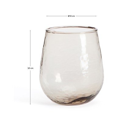 Čaša Sileia brenda Kave Home izrađena je od recikliranog stakla i impresionira svojim jednostavnim i bezvremenskim dizajnom. Njena teksturirana površina dodaje dašak originalnosti i karaktera. Čvrstoća materijala čini čašu prikladnom za svakodnevnu upotrebu i lakom je za održavanje, jer se može prati u perilici posuđa. Njen univerzalni oblik odgovara različitim stilovima i prigodama, pa će biti odličan dodatak vašoj blagovaonici u bilo koje doba dana.