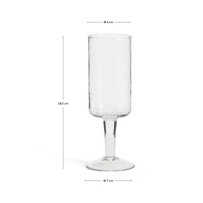 Vinska čaša Obila brenda Kave Home izrađena je od recikliranog stakla, što joj daje ne samo jedinstven izgled, već i ekološku dimenziju. Njen jednostavan i bezvremenski dizajn lako se prilagođava različitim stilovima i prigodama te dodaje funkcionalnost i prepoznatljiv karakter vašem iskustvu objedovanja. Površina čaše ukrašena je zanimljivom teksturiranom završnom obradom. Zahvaljujući čvrstoći stakla, prikladna je za svakodnevnu upotrebu i može se bez brige prati u perilici posuđa, što je čini lakom za čišćenje i održavanje. Ovo je svestran komad koji će pratiti svaki obrok.