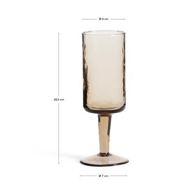 Vinska čaša Obila brenda Kave Home izrađena je od recikliranog stakla, što joj daje ne samo jedinstven izgled, već i ekološku dimenziju. Njen jednostavan i bezvremenski dizajn lako se prilagođava različitim stilovima i prigodama te dodaje funkcionalnost i prepoznatljiv karakter vašem iskustvu objedovanja. Površina čaše ukrašena je zanimljivom teksturiranom završnom obradom. Zahvaljujući čvrstoći stakla, prikladna je za svakodnevnu upotrebu i može se bez brige prati u perilici posuđa, što je čini lakom za čišćenje i održavanje. Ovo je svestran komad koji će pratiti svaki obrok.