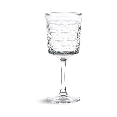 Vinska čaša Hermia impresionira svojim modernim izgledom. Izrađena je od prozirnog stakla, a površina joj je ukrašena prepoznatljivim fasetiranim uzorkom, koji stvara zanimljivu igru svjetlosti i daje čašama geometrijski izgled. Set uključuje četiri komada volumena 330 ml.