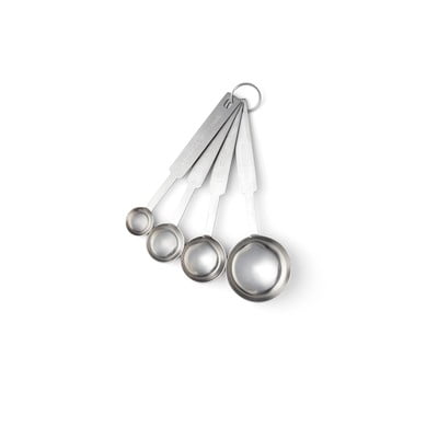 Ovaj četverodijelni set Blomsterbergs mjernih posuda dizajniran je za jednostavno, ali precizno mjerenje začina. Pojedinačne mjerne žličice od 1,25, 2,25, 5 i 15 ml vezane su metalnim prstenom i zbog mogućnosti slaganja ne zauzimaju gotovo nimalo mjesta u ladici. Njihove dugačke ručke omogućuju vam da s lakoćom dosegnete većinu staklenki.