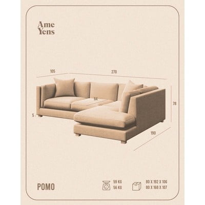 S desnim kutom, ciglasta, s 4 mjesta, širina 270 cm