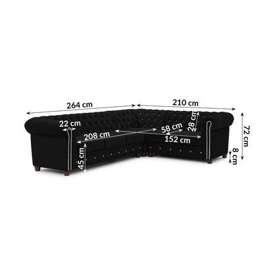BaršunastiSklopivaChesterfieldS desnim kutom/u obliku slova LCrnaVodootporna/otporna na mrljeS 4 mjestaŠirina 264 cm