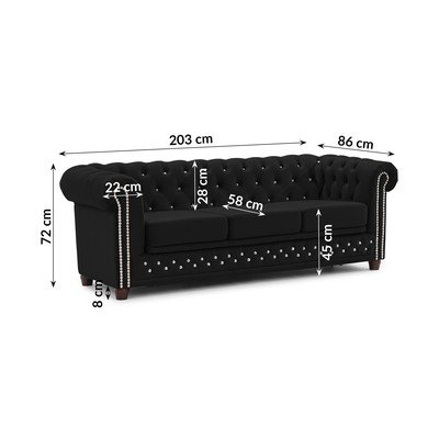 Baršunasti, sklopiva, chesterfield, crna, vodootporna/otporna na mrlje, s 2 mjesta, širina 203 cm