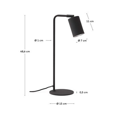 Stolna lampa Manie brenda Kave Home, s metalnom konstrukcijom i završnom obradom s efektom lijevanog željeza, idealan je dodatak koji svakom prostoru dodaje eleganciju i funkcionalnost. Njezin minimalistički dizajn savršeno se uklapa u moderne i suvremene interijere, dajući im čistu estetiku bez gubitka osobnosti. Sjenilo ima podesivi reflektor koji vam omogućuje promjenu smjera svjetlosti prema vašim potrebama. To je idealno za stvaranje reflektora za čitanje ili za isticanje ukrasnih elemenata na zidu. Ova stolna lampa kompatibilna je s E14 žaruljama do 25 W. Žarulja nije uključena, što vam daje mogućnost da u potpunosti prilagodite intenzitet i nijansu svjetlosti prema specifičnom prostoru i atmosferi.