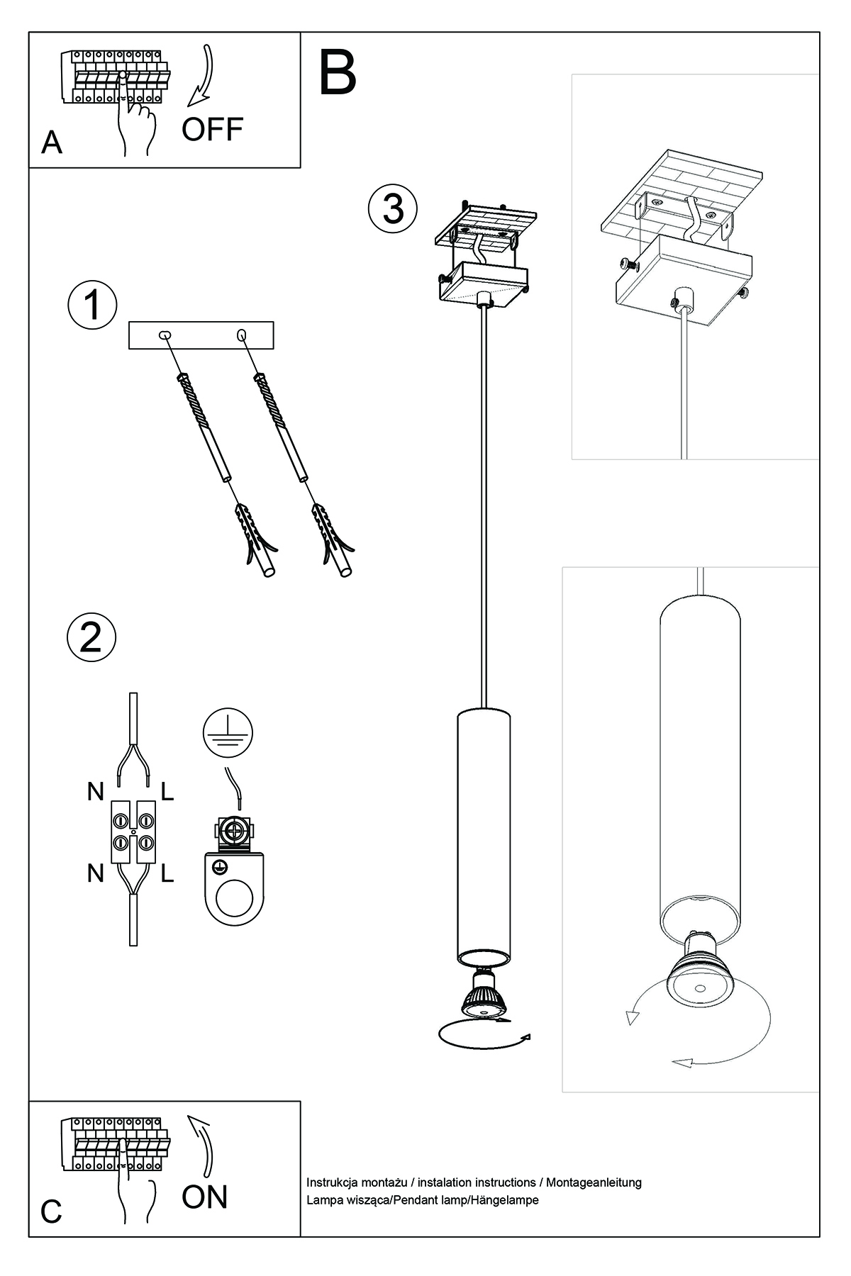 Viseća svjetiljka CastroMetalna, crna, 8x8 cm, visina 85 cm