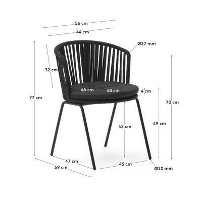 Metalna, crna, nosivost 130 kg, širina 59 cm, visina 77 cm, dubina 56 cm