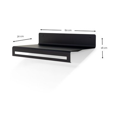 S policom, metalna, crna, širina 60 cm, visina 18 cm, dubina 30 cm