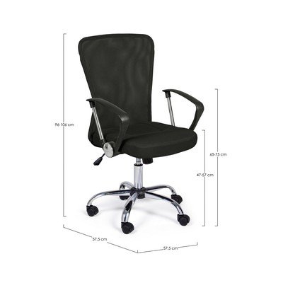 Podstavljena, s kotačićima/podesive visine/s naslonima za ruke, crna, nosivost 110 kg, visine sjedala 57-57 cm