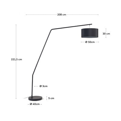 Podna lampa Ciana brenda Kave Home izrađena je od metala s crnom završnom obradom. Svjetiljka ima jednostavan moderan dizajn s dugim krakom i okruglim tekstilnim sjenilom. Ako ikada poželite promijeniti ga, sjenilo se lako može zamijeniti drugim. Svjetiljka je kompatibilna sa žaruljama s grlom E27 maksimalne snage 32 W.