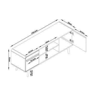 U dekoru hrasta, od iverice, završna obrada: Folija, crna/u prirodnoj boji, širina 140 cm, visina 53 cm, dubina 39 cm