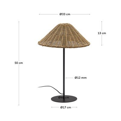 Sa sjenilom od ratana, metalna/od ratana, s utikačem, crna/u prirodnoj boji, visina 50 cm