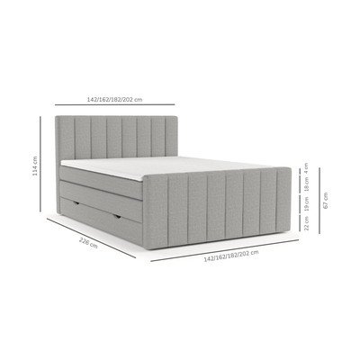 Ovaj boxspring krevet pruža nepogrešivu udobnost zahvaljujući dvije vrste madraca. Dok se donji madrac visine 19 cm sastoji od bonell opruga i poliuretanske pjene, skidivi gornji madrac visine 18 cm sastoji se od džepićastih opruga smještenih u pojedinačnim džepovima.