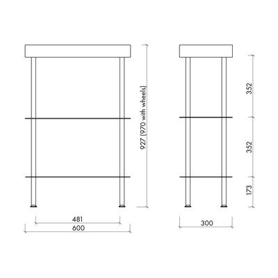 Crni metalni regal na kotačima 60x62x30 cm Nolle – noo.ma