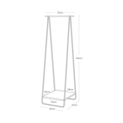 YAMAZAKI stalak za odjeću idealna je kombinacija funkcionalnosti i modernog dizajna. Nudi jednostavno i praktično rješenje za pohranu odjeće. Izrađen je od visokokvalitetnog metala s elegantnom mat završnom obradom koja naglašava njegov minimalistički izgled.