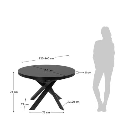 Proširiv, s dodatnom pločom, sa staklenom pločom stola, ø 160 cm, duljina rasklopljenog 160 cm