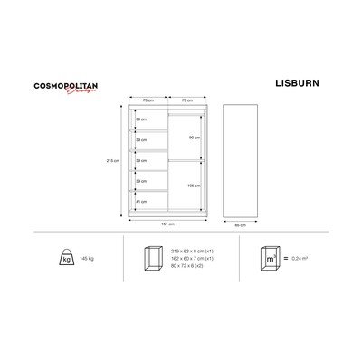 Lisburn ormar unijet će dašak modernog stila u vaš dom. Već na prvi pogled privući će vas klizna vrata s ogledalom. Zahvaljujući jednostavnom, ali elegantnom dizajnu, naći će mjesto u vašoj spavaćoj sobi, kao i u vašem hodniku.