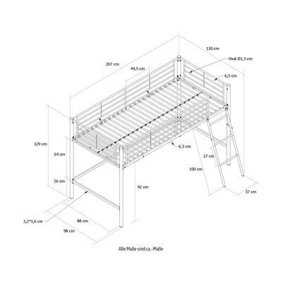 90x200 cm, podignuti, s podnicom, metalni, crni