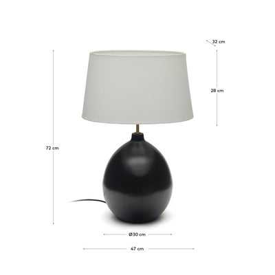 Stolna lampa Foixa iz Kave Homea impresionira kontrastnom kombinacijom crne metalne baze i bijelog tekstilnog sjenila. Svjetiljka je kompatibilna sa žaruljama tipa E27 maksimalne snage 40 W. Žarulja nije uključena.
