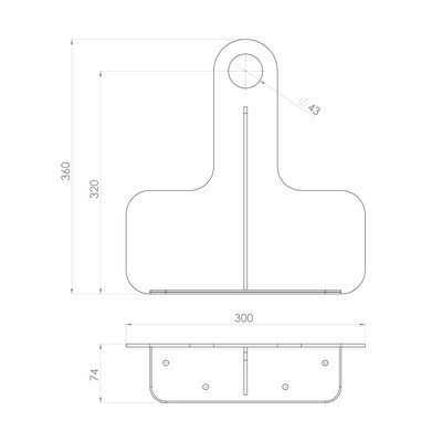 Zidno, željezno, u mat dekoru, crno, širina 30 cm, visina 7 cm, dubina 36 cm