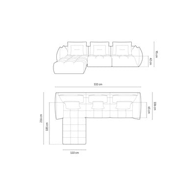 S desnim kutom/s lijevim kutom/promjenjiva/s ležaljkom, crvena, ostali, širina 332 cm