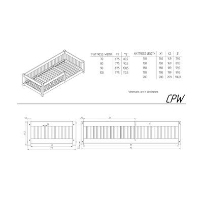 80x200 cm, s podnicom, od masivnog bora, završna obrada: bez obrade/završna obrada: brušenje, u prirodnoj boji