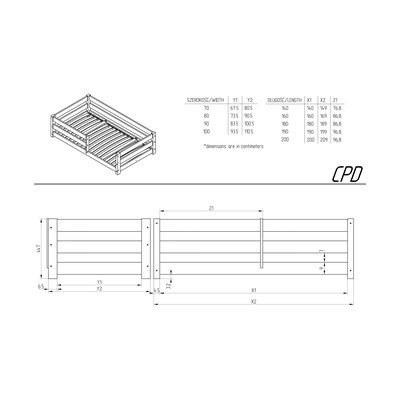 Dječji krevet CPD90x180 cm, s dodatnim ležajem, s prostorom za odlaganje, s podnicom, od masivnog bora, završna obrada: bez obrade/završna obrada: brušenje, u prirodnoj boji