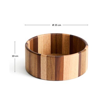 Zdjela za posluživanje Nover brenda Kave Home izrađena je od kombinacije različitih vrsta drva, što joj daje prepoznatljiv i originalan izgled. Svaki komad ima vlastiti uzorak i nijanse, što svaki proizvod čini jedinstvenim. Drvo korišteno u proizvodnji ima 100% FSC™ certifikat, što jamči odgovorno gospodarenje šumama i kontrolirani lanac opskrbe. Ova zdjela dizajnirana je da bude ne samo funkcionalna, već i dekorativni element. Zahvaljujući prugastom uzorku različitih vrsta drva, savršena je za kuhinju i blagovaonicu, gdje se može koristiti za posluživanje hrane ili kao stilski ukras.