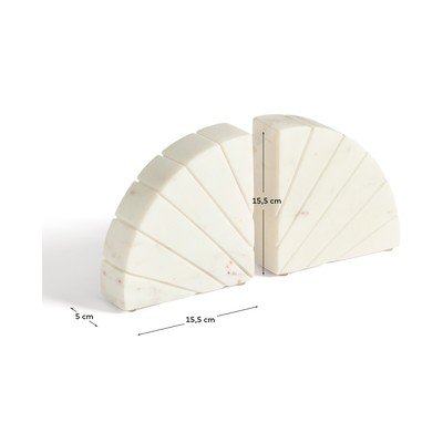 Držači za knjige Serela brenda Kave Home izrađeni su od mramora, što svakom komadu daje jedinstven izgled s autentičnim žilicama. Njihov dizajn karakteriziraju ravni oblici i definirani kutovi, koji kombiniraju eleganciju i karakter. Ovi držači za knjige u obliku četvrtine kruga s lepezastim segmentiranjem ne samo da praktično drže vaše knjige na mjestu, već služe i kao ekskluzivni dekorativni element. Zahvaljujući svom bezvremenskom dizajnu, podići će svaki prostor, bilo da se radi o dnevnoj sobi, spavaćoj sobi ili kupaonici, te se lako prilagođavaju različitim stilovima interijera. Osim toga, mramor jamči dugotrajnost i izdržljivost.