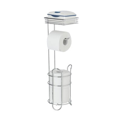 Stabilan samostojeći držač toaletnog papira, gornja polica je taman za kutiju mokrog toaletnog papira, donja košara lako drži 3 rezervne role. Ispunio...