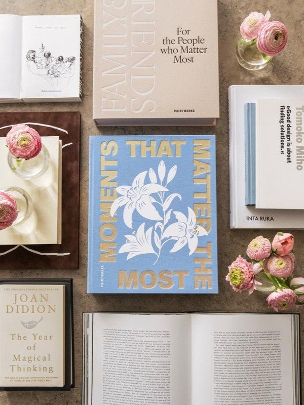 Album "Trenuci koji su najvažniji" brenda Printworks elegantan je foto album savršen za bočni stolić. Ima platneni omot i moderan dizajn. Unutra ćete pronaći 30 stranica visokokvalitetnog foto papira dimenzija 28 x 21 cm, na koje možete jednostavno pričvrstiti fotografije pomoću naljepnica ili foto kutova (potrebno ih je kupiti zasebno).
