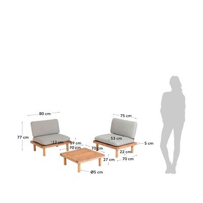 Vrtna garnituraZa 2 osobe, siva/u prirodnoj boji, 3 kom